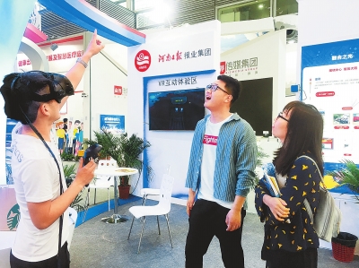 深圳文博會(huì)上,河南日?qǐng)?bào)報(bào)業(yè)集團(tuán)展館的VR互動(dòng)體驗(yàn)區(qū)吸引了許多觀眾前來(lái)體驗(yàn)。師喆攝